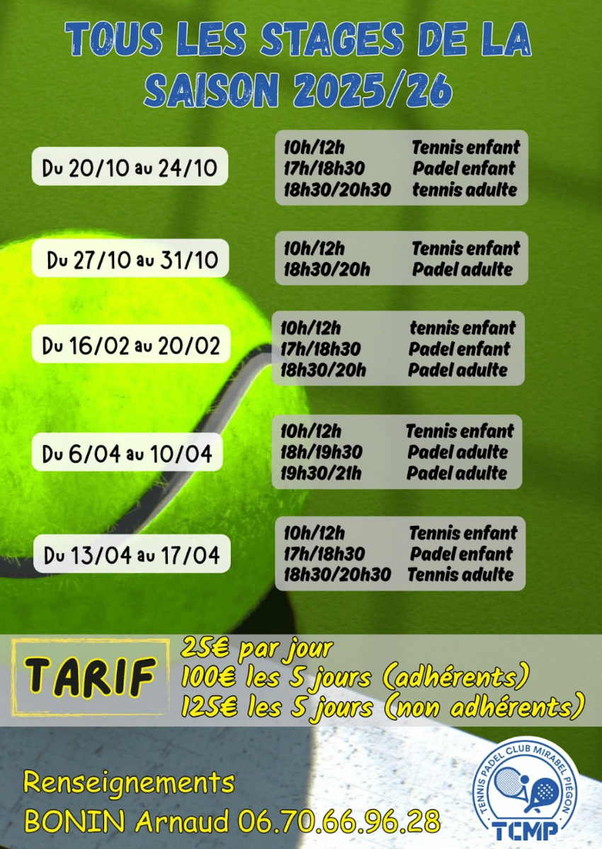 Voici le calendrier des stages proposés par le coach Arnaud. L'inscription se fait maintenant en ligne.